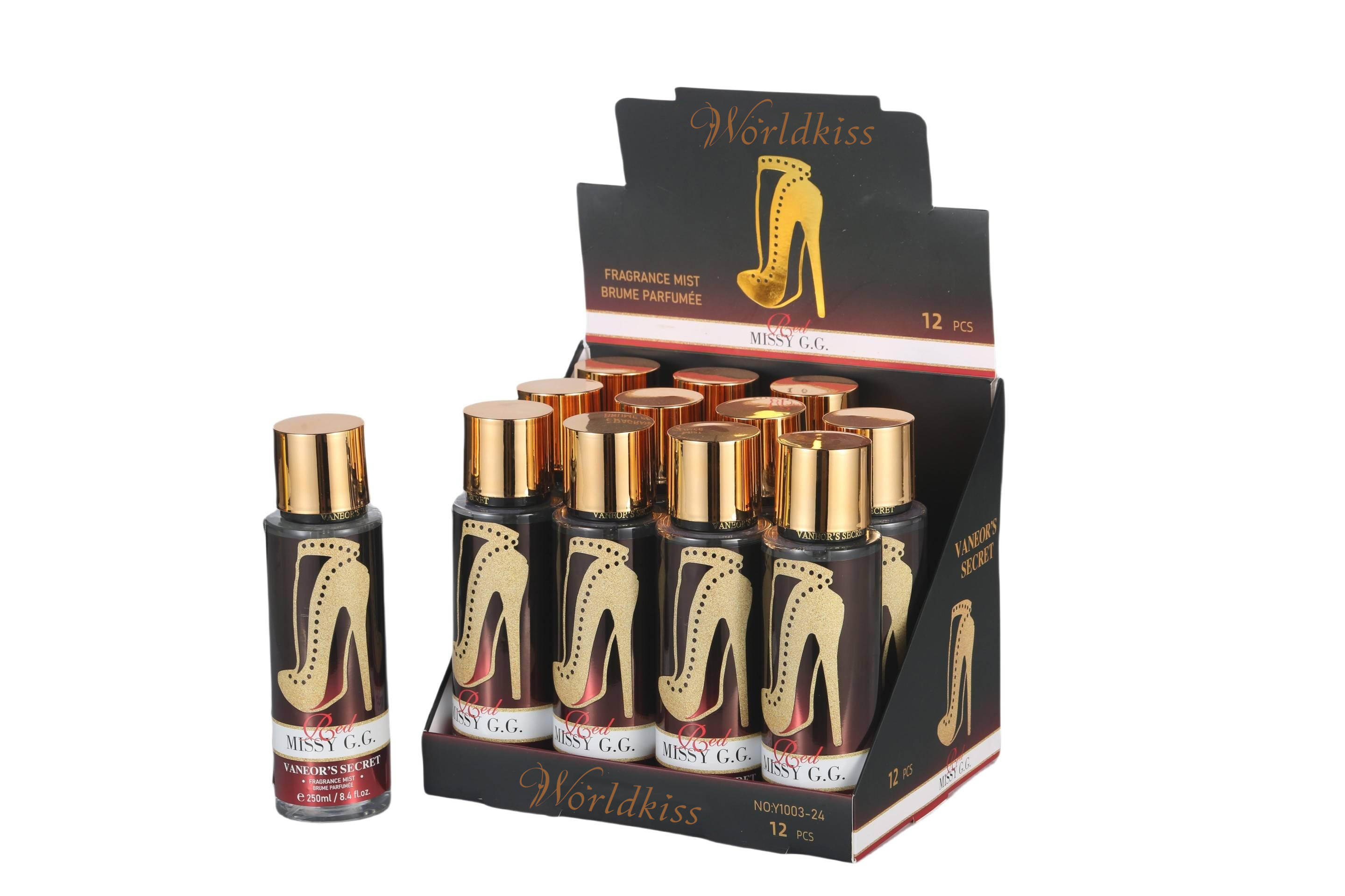 Disfrute de una refrescante explosión de elegancia con nuestro Perfume Mist de 250 ml. Ligero pero duradero, este spray de fina fragancia envuelve suavemente tu piel y cabello en un delicado aroma que dura todo el día. Perfecto para el uso diario, te deja una sensación de frescura, confianza e irresistible.